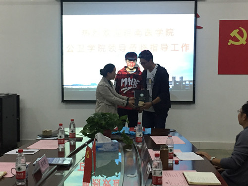 四位预防医学交换生各自谈了在新的学校新的班级的学习生活经历和感受,对学校的交换生项目表示肯定,对双方学校的细心安排表示感谢。车向新院长和黄月娥院长分别为四位交流学生颁发了交流证书并赠送了纪念校徽。