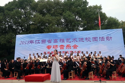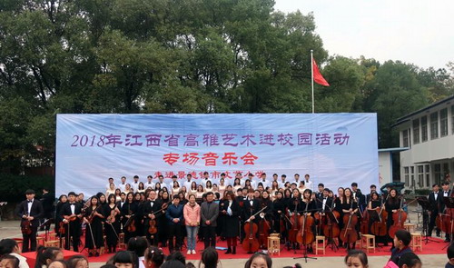 高雅艺术进校园活动旨在培育和弘扬社会主义核心价值观,提升校园文化品位,丰富校园文化生活,引领学生走进艺术、感受经典、陶冶情操、提高审美。我校艺术团根据省教育厅安排,11月21日由艺术学院副院长欧阳时来带领艺术学院艺术团140位师生赴景德镇文艺小学和景德镇陶瓷大学,开展2018年江西省高雅艺术进校园巡演活动。