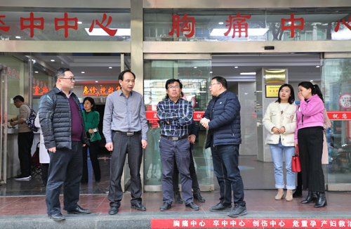 随后,两院相关科室人员进行了对口交流。高书记一行在附院人员陪同下,前往急诊科、消化内科等处,实地了解了五大中心创建和重点学科建设情况。