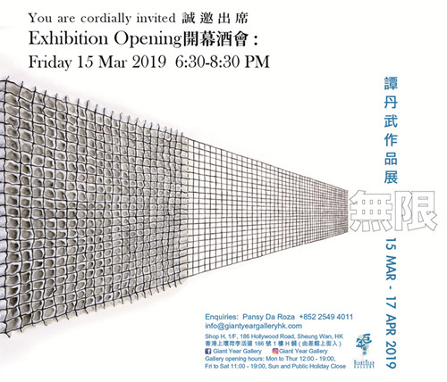 2019年3月15日,青年艺术家、九江学院艺术学院教师谭丹武个人作品展《无限》(展期:2019年3月15日至4月17日)在香港巨年艺廊(Giant Year Gallery)隆重开幕,来自香港本地和台湾的著名陶艺家赵素兰、关秀文、陈兰美等以及国内外藏家出席了开幕式。巨年艺廊是香港唯一专注推广本地及国际当代陶瓷艺术的艺廊,谭丹武是内地第一位受该艺廊特邀做陶艺个展的青年艺术家。