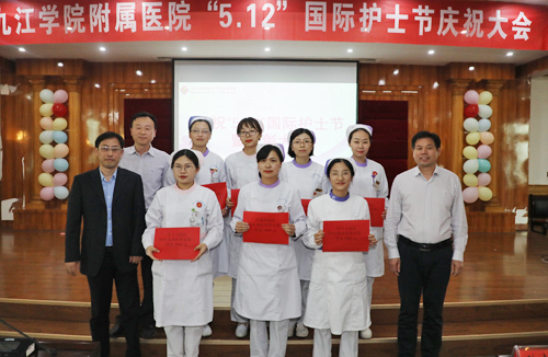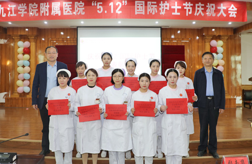 副院长胡志坚宣读了附院2019年5.12国际护士节表彰科室及护理人员的名单,表彰了2018年度省、市、院级优秀护士,2018年度九江市护理学会优秀护理管理者、优秀岗位奉献者、优秀会员,2018年度护理质控前三名及满意度前四名科室,2018年度省市级奖项获得个人,以及2019年5.12微视频、理论竞赛的一、二、三等奖获得者。院领导分别为获奖科室及个人颁奖并合影留念。