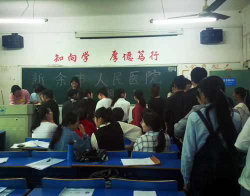九院代有才人出,勇闯面试独木桥。为推进2019届毕业生就业工作再上新台阶,进一步提高2019届毕业生就业率,5月15日下午13点,护理学院携手新余市人民医院在思贤楼205、206教室开展专场招聘会。此次招聘会深受医院和护理学院重视,学生科科长范玲玲和辅导员袁青兰老师在现场组织和指导,共有62名准毕业生参加招聘。
