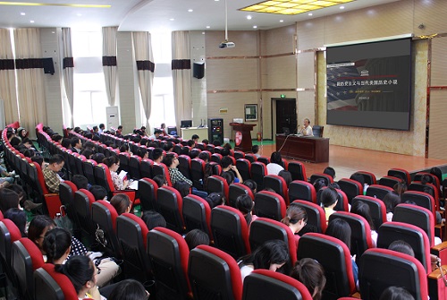 5月17日下午,上海外国语大学英语教授、博士生导师虞建华应邀到外国语学院作题为“新历史主义与当代美国历史小说”的学术讲座。院长韩琨、副院长罗其娟、以及300多名师生一起聆听了虞建华教授的讲座,讲座由外国语学院副院长周志高主持。