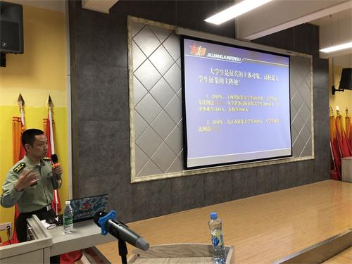 根据学校征兵工作安排,5月15日下午,学校在望庐楼101会议室举行征兵工作培训会,九江市人民政府征兵办公室、九江市军分区军动处参谋钟韬应邀担任主讲,学生处副处长郭青主持会议,各二级学院辅导员参加了培训会。