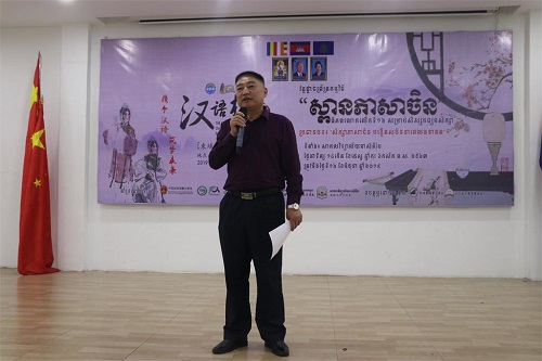 柬华理事总会副会长兼文教师资基金处处长郑棉发勋爵在开幕式上致辞,他说:“汉语桥激发了学生学习汉语的热情,是走近中国、了解中国的窗口。柬华理事会一直很重视柬埔寨的华文教育,培养学生对中华文化的兴趣和汉语交流能力。”