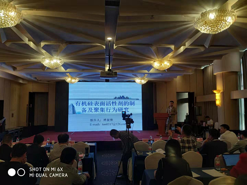 我校星火有机硅产业研究中心的谭景林博士、潘家炎博士应邀分别做了“有机硅表面活性剂的制备及其聚集行为研究”、“纳米SiO2杂化长链烷基/苯基硅树脂的合成及其在织物中应用”的主题报告,受到了专家及业界同行的高度评价及热烈欢迎。会议期间,中心教师分别与山东大学、陕西科技大学、杭州师范大学有机硅化学及材料技术教育部重点实验室、埃肯江西蓝星星火有机硅有限公司的学者专家进行了广泛深入的交流,拓展了思路并进一步扩大了学校及中心影响力。
