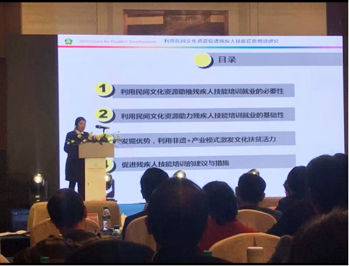 我校艺术学院教师应邀参加论坛并做代表性发言,论述新形势下,如何充分利用民间文化资源尤其是非物质文化遗产传统手工艺帮助残疾人掌握一门技能,获得一个就业岗位,通过“非遗+”模式激发文化扶贫活力,对口帮扶残疾人提高技能培训质效,肯定了从多元化视角开启残疾人艺术探索的道路。杨四宝教师论文《利用民间文化资源促进残疾人技能培训质效研究 》得到专家热情点评和认可,同时收入论坛论文集。
