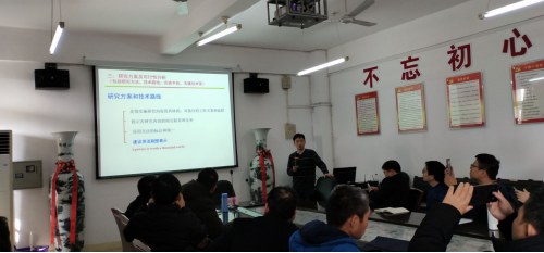 彭游首先介绍曹达鹏教授的简介,对曹教授表示热烈欢迎。曹教授从基金申请前的准备工作讲起,对立项依据、研究方向、研究内容、研究目标等进行了细致讲解,对可能出现的问题进行分析,在场的老师受益匪浅。报告结束后陈修栋、向程等博士们积极和曹教授进行交流,与会老师纷纷表示获得了很多收获,避免在以后的申请方面多走弯路。