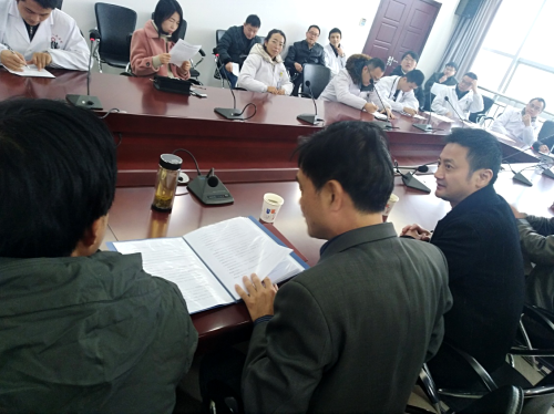 杨副校长一行与武宁县人民医院领导、教师进行座谈,同时现场查看教学安排、教学运行记录、教案、课件等相关教学材料,并对教学管理部门及各临床科室教学骨干进行问卷调查。