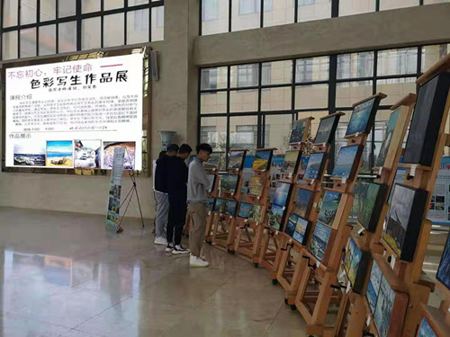 11月18日上午,艺术学院“不忘初心 牢记使命”--美术学专业2018级色彩写生作品展于艺术大楼一楼大厅举行,出席本次活动的有:党委书记王春生,教学副院长虞斌,副书记沈杨,美术教研室主任谭丹武,以及艺术学院2018、2019级部分学生共100余人到场参加。