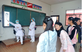当天有儿童和老人共50余人,为提高效率,附属医院专家利用教室和户外场地,分成几组进行体检和义诊,重点对儿童生长发育、眼视力健康、口腔健康以及老年人呼吸、心血管与皮肤等方面问题进行筛查和看诊。这些儿童多是因父母外出务工,与爷爷奶奶生活,健康意识与自身健康状况的认知表述偏弱。