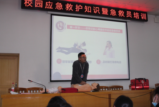 开班仪式后,九江市急救培训专家、TOT国际急救认证师钱蓬鑫、高蕾等老师将为急救员授课,校综治干事、后勤人员、校医院工作人员、学生卫生健康服务队员及部分学生等约100名学员参加本次培训。