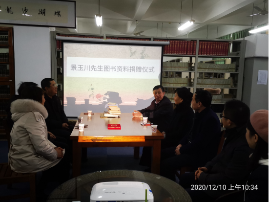 近日,国家一级作家、知名校友景玉川先生向我校捐赠了图书资料。12月10日上午,捐赠仪式在我校图书馆庐山文化特藏室举行。景玉川先生及夫人、原市委副秘书长兼市史志办主任罗环,学校档案馆、图书馆、庐山文化研究中心有关负责同志和相关工作人员等共同出席仪式并座谈。