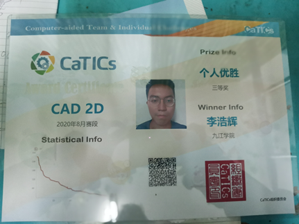 目前,李浩辉获得了第二十二届CaTICs竞赛CAD 2D个人三等奖(省级)、2020年度全国大学生语言文字能力竞赛优秀奖(省级)、2020年全国大学生文学知识竞赛特等奖(省级)、江西高校图书馆联盟第十届知网杯搜索竞赛校级赛优胜奖(校级)、社会工作科普知识竞赛一等奖(校级)、全国大学生职业发展大赛优秀奖(校级)、国际关系和背景知识竞赛三等奖(校级)、全国大学生交通安全知识竞赛特等奖(校级)、国防安全知识竞答优秀奖、九阳杯电子商务知识竞赛一等奖、博古通今知识荟萃文学竞赛优秀奖等。同时,李浩辉在学习上也获得了校级奖学金。他的室友经常调侃他:“李浩辉,你的奖状能不能往旁边挪挪,我们都没地放书了。”令人捧腹的同时,也让人肃然起敬 。