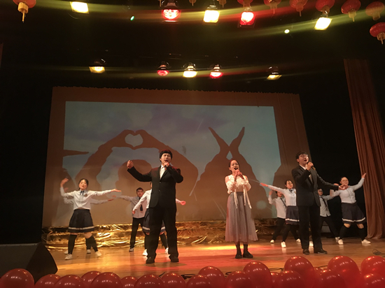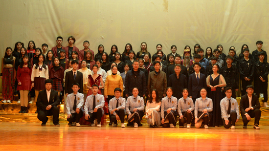 演出结束后,伴随着难忘今宵的旋律,校领导走上舞台,与演职人员亲切握手、合影留念。