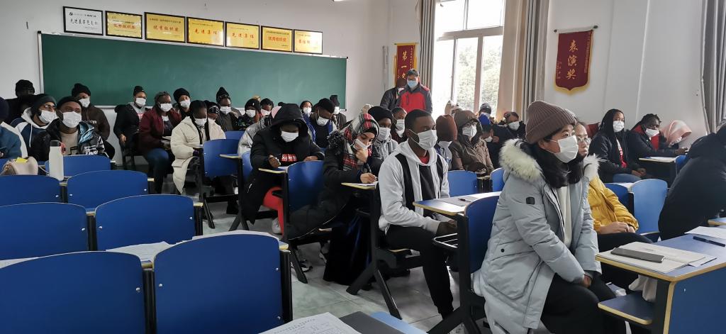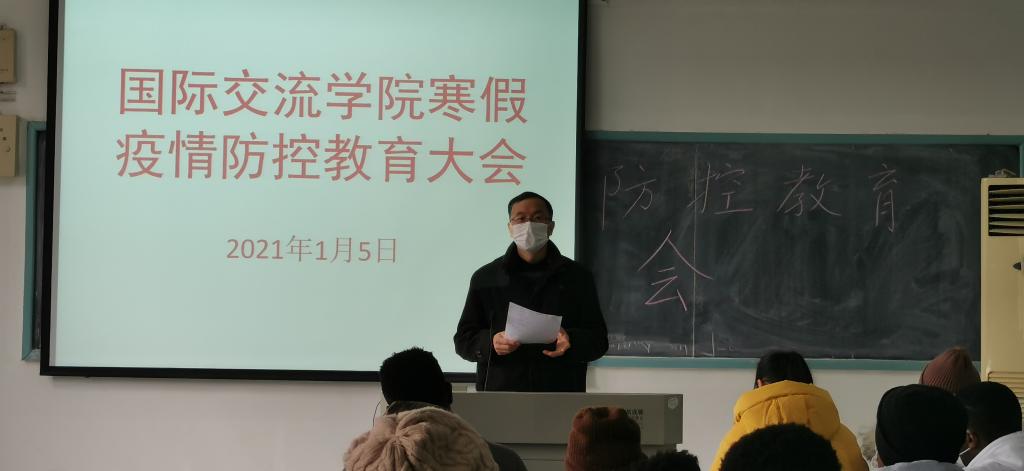 在寒假、春节即将到来之际,为贯彻落实省委、省政府提出的“两个尽量”“两个严禁”“两个一律”的疫情防控工作要求,提高留学生假期的疫情防控意识和防护能力,1月5日上午,我校国际交流学院在竞秀楼举行留学生寒假疫情防控教育大会。在校留学生和国际交流学院老师参加了会议。