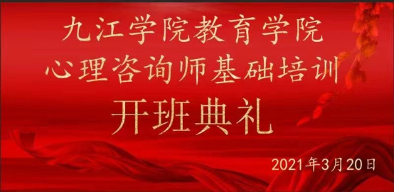 3月20日上午,九江学院教育学院心理咨询师基础培训班开班典礼在竞知楼阶梯六教室顺利举行。九江市未成年人心理健康辅导中心团队负责人邢久旺主任,九江市第五人民医院心理科一区主任张懿,红杉树英语培训学校校长单思虎、九江市第七中学政教处主任吴明勇、校心理健康咨询中心副主任朱俊婉、瑞昌市第八中学心理健康教育中心主任刘钰,教育学院相关负责人、该院应用心理学教研室全体教师和来自九江地区不同行业的学员近40人参加了开班典礼。我校党委委员、教育学院院长王殿元出席开班仪式并致辞。