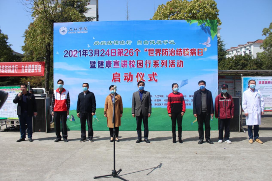 3月24日是第26个“世界防治结核病日”,我校在三食堂前广场举行了“世界防治结核病日”暨健康校园宣讲系列活动启动仪式。副校长杨耀防出席仪式并致辞。九江市疾控中心、九江市结防所、濂溪区卫健委、区疾控中心、校团委和校医院负责人以及濂溪区疾控中心、校医院相关人员、学生唯医服务队等共计400余人参加了此次活动。