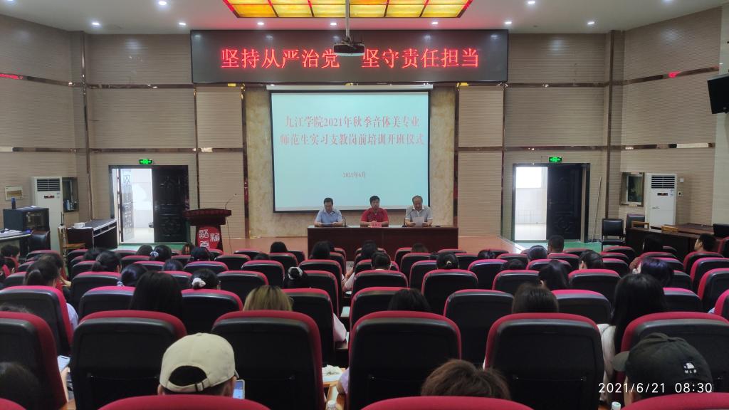 根据省教育厅工作部署,2021年秋季计划选派我校2018级146名音体美专业师范生前往九江市下辖11个县(市区)53所农村小学进行实习支教。6月21日上午,学校在香远楼3楼报告厅举行2021年秋季音体美师范专业大学生实习支教岗前培训开班仪式。副校长陈春生到会讲话,教务处负责人、实习(带队)指导教师、岗前培训教师和2018级音体美师范专业146名实习支教学生参加开班仪式。