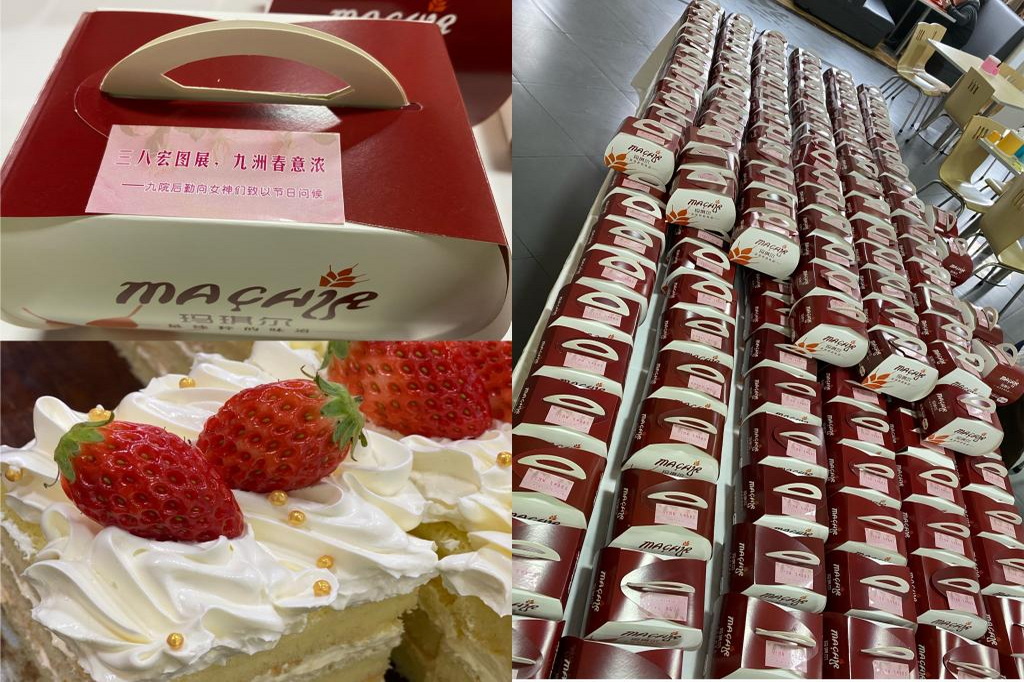 “三八”妇女节当天,后勤管理处在主校区教工食堂和浔东校区的教工窗口,为前来就餐的女教职员工送上了后勤西点厨师们自己烘培的美味蛋糕,前来就餐的女教职工们拿到这些可爱的小蛋糕,看着蛋糕盒上温馨的祝福话语,欣喜之情溢于言表。礼物虽小,却让大家感受到了浓浓的情谊。