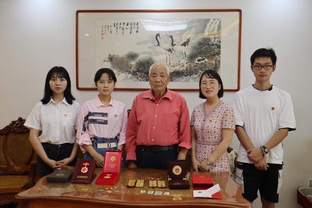 9月30日,九江学院红色访谈第一组学生代表王竹卿、夏玲英、孔子文在马克思主义学院文媛媛老师的带领下,来到江西省九江市陆家垄路探访经历过淮海战役、渡江战役等战斗的“机枪英雄”林祥同志。
