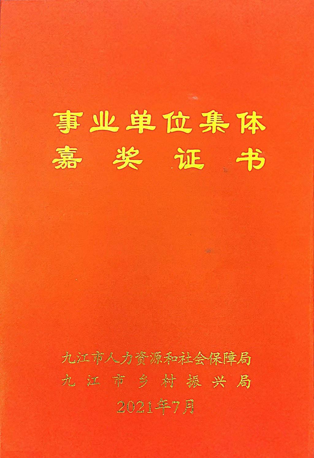 近日,从九江市人力资源和社会保障局、九江市乡村振兴局《关于给予九江市高级技工学校等3个集体、汤高峰等36名同志记功和九江市房地产公司等36个集体、吴寰等170名同志嘉奖奖励的决定》文件获悉,我校脱贫攻坚驻村工作队荣获市事业单位脱贫攻坚专项奖励集体嘉奖。