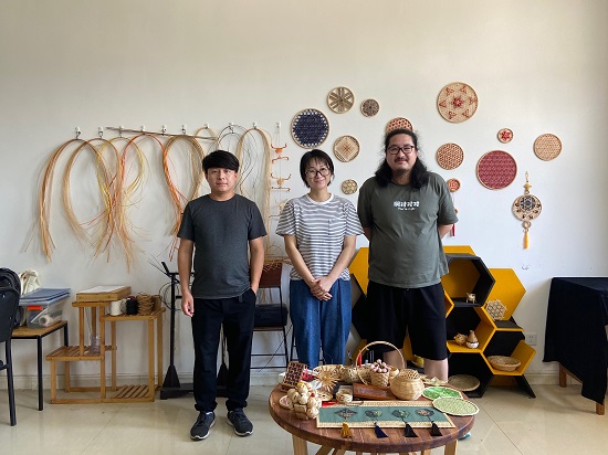 据了解,艺术学院长期致力于保护传承本土非物质文化遗产的工作,并在该领域取得了一定的学术研究成果。此次来院采访和拍摄是受国家级非遗传承人田先敏先生的推荐,为“瑞昌竹编”寻求学术支撑。艺术学院万蕾老师多年来围绕“瑞昌竹编”进行了一系列的研究并取得了一定的研究成果:编著《民间美术·瑞昌竹编》一书,主持研究江西省高校人文社会科学课题《现代产品设计中民间工艺的传承与再生性研究——以瑞昌竹编为例》、江西省文化艺术科学规划课题《“瑞昌竹编”非物质文化遗产传承人口述史研究》,瑞昌竹编相关研究论文5篇等;在自己学习竹编技艺的同时,她还积极将竹编技艺与课程教学相结合,让更多年轻人了解瑞昌竹编,并与专业设计融合进行创新探索瑞昌竹编活态传承的新路径,指导学生进行瑞昌竹编创新设计多项,其中《便携式竹音箱》获江西省第七届工业设计双年展文化创意大赛金奖。