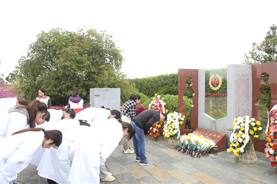 4月5日上午,医学院“大骨班”学员来到九江市烈士陵园,开展革命先烈追思活动,拜祭革命先烈,传承革命精神。