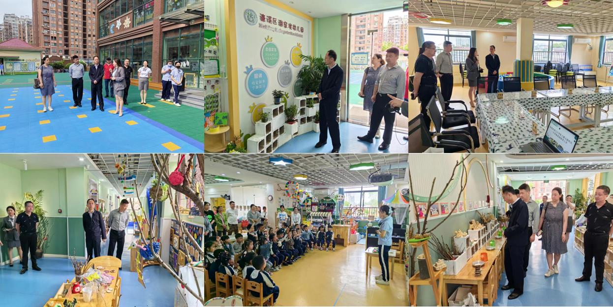 濂溪区第五幼儿园园长周慧带领我校一行人参观了幼儿园,讲解了园所的户外环境创设和室内区域布置,并着重介绍了园内特色文创项目。