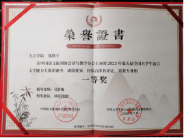 近日,由中国语文报刊协会读写教学分会举办的第五届全国大学生语言文字能力大赛决赛成绩揭晓,我校文学院汉教A2151班由吴舒雅老师指导的6位同学中有4位晋级决赛,郑欣宇同学获得大赛决赛专业组一等奖,杨青霞、胡凌煊同学获决赛专业组三等奖,黄燕同学获决赛专业组优秀奖。