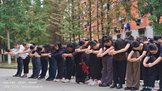 上午8时,全体参礼人员整冠肃立,面向校园内的孔子像行三鞠躬礼。