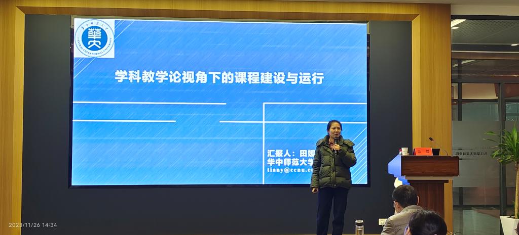 会上,田媛教授从师范专业认证“学生中心、产出导向、质量持续改进”理念出发,结合自己多年教学与课程建设运行经验,对课程的组织与设计、理解互动、课程评价等分别进行了列举分析。田教授强调,教师在教学过程中,要善于运用多种教学方式,让课堂教学形式多样化,让课堂活起来,多鼓励、认可学生、给予学生正向反馈的同时,再对学生提出进一步的学习与思考的要求。