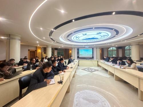 为推进科研平台规范化管理,促进平台有序发展,12月15日,我校在行政楼1号会议室召开2023年度科研平台考核工作汇报会。29个省市级科研平台主要负责人参加了考核汇报工作。会议邀请校内专家周志高教授、刘可越教授、李红教授担任评委。副校长严平出席并讲话。