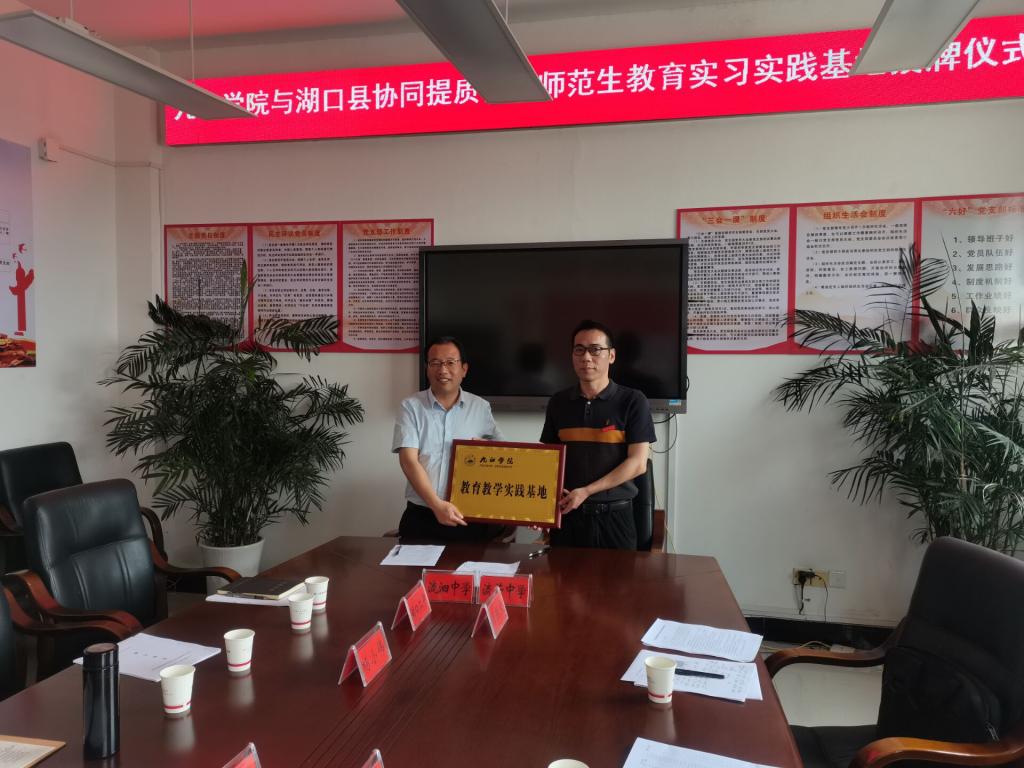 检查期间,我校还和部分实习学校签订了实习实践基地合作协议,并挂牌九江学院教育教学实践基地。