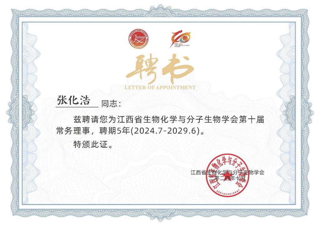 大会审议并通过了《江西省生物化学与分子生物学会第九届理事会工作报告》《江西省生物化学与分子生物学会第九届理事会财务工作报告》《江西省生物化学与分子生物学会章程(修订草案)》;选举产生了江西省生物化学与分子生物学会第十届理事会和第一届监事会。我校药学与生命科学学院张化浩当选为常务理事,基础医学院陈川当选为理事。