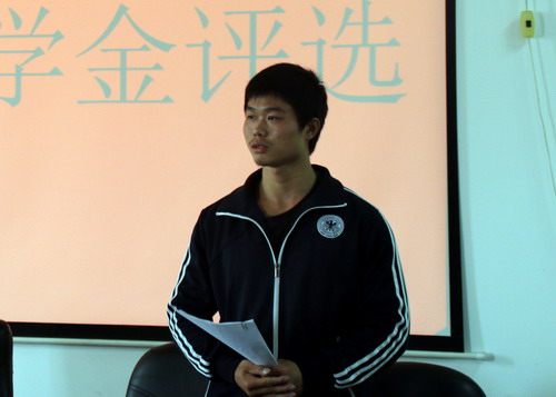 随后,5名参选学生分别简单自我介绍,然后从学习成绩及自己在本专业排名,综合测评总分及在本专业排名,担任工作职务、所做的工作及成效,平时在班级、寝室的表现情况,参加社会实践、演出、比赛及获奖情况,参与青年志愿者及公益活动情况和自己表现特别突出的情况进行演说。