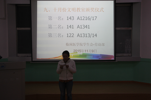 为营造“文明和谐”的校园氛围,丰富校园文化内涵,临床医学院/附属医院组织了2015年文明教室寝室评比活动,经过一段时间的检查评比,各个奖项均有归属。11月9日中午,学院学生会劳动部、生活部于在庐峰校区举行了文明教室、文明寝室评比颁奖仪式。学生科副科长燕碧波、团委夏虹老师出席本次仪式。