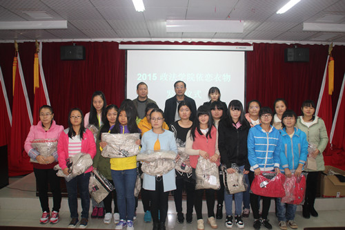 冬季来临,天气转寒。为更好的帮助困难学生,给她们送去冬日里的温暖,11月19日中午,政法学院在综合楼会议室举办“冬季送温暖”活动——依恋集团爱心衣物发放仪式。政法学院党委书记高翔、学生科老师和受助学生代表参加了发放仪式。