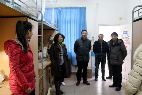 2月21日下午,外国语学院院长韩琨、院党委书记杨杰、副院长柴克清、党委副书记彭晓在院办、学生科、团委负责人、辅导员的陪同下深入学生宿舍看望返校学生,并给同学们送去了新年的祝福。