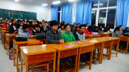 在404教室,黄生阳、刘其珍、谢利兵、朱慧珍、黄文彪五位学长学姐们以ppt的形式展示了他们在大学期间的学习、工作、生活和所取得的成绩,重点介绍了《数学分析》、《高等代数》的学习方法,强调多彩的大学生活,就是要找到自己的目标,做自己喜欢的事,引起了学弟学妹们的共鸣,提醒大一同学们应多读书、多思考,学会平衡学习和工作的关系,鼓励大家考研。互动环节,学长学姐们认真、耐心地解答同学们提出了问题和疑惑。