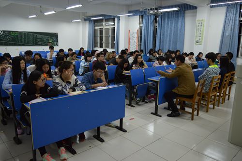 石常辉首先和同学们讲述了团学联各部门的职能与相互团结协作的关系,对团学联的未来发展走向作了展望。并和在场同学分享了自己对大学生活的感悟与认识。其他三位学长学姐向同学们介绍了作为一个优秀的团学联干部应该具备的几点基本品质,如有责任心、自信、坚持不懈、有爱心等,并结合自己的工作生活实例向在场同学说明其重要性。同学们也提出了相关问题,如:如何锻炼个人口才,如何从失败中接受教训并调整心态等问题。四位学长学姐就这些问题作了回答。同学们情绪高涨,积极与学长学姐们互动。全场欢声笑语不断,气氛热烈。
