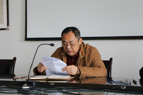 党委副书记、院长高小英在会上传达了中共九江学院党委会“两学一做”重要文件精神,带领所有成员学习了文件的详细内容。他重点强调了以下三点:第一,在推进“两学一做”学习教育中要落实总体要求,要注重把握原则:第二,要掌握学习教育的方法与措施;第三,要加强组织领导,自上而下地做好本次工作。