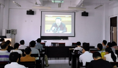 会上,全院教师观看了专题记录片《咬住青山不放松——习近平总书记论理想信念的八个关键词》。党委书记邹国辉详细解读了“两学一做”学习教育活动的重大意义及活动的背景,并结合学院实际情况,谈了自己对“两学一做”活动的思考。党委班子领导分别谈了自己在“两学一做”学习活动中的体会。