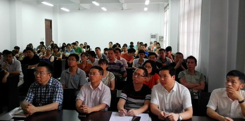 6月30日上午,理学院全院教师大会暨“两学一做”专题学习会在文友楼312举行,邹国辉书记主持会议,学院党政领导班子成员、全体教师出席大会。