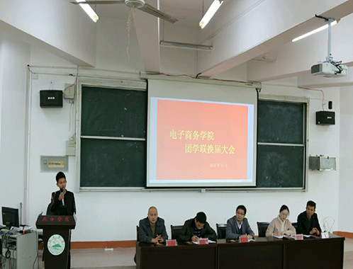11月2日中午,电子商务学院在竞知楼一阶报告厅举行第二届团学联换届大会。学院党委书记丁文林出席会议,学生科全体老师、全体学生干部及助理班主任参加了会议,会议由学生科科长仲维春主持。