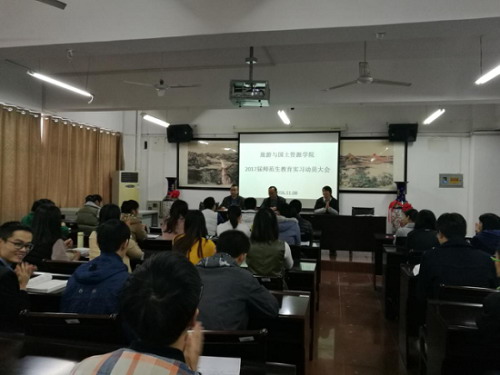 11月8日上午,旅游与国土资源学院在竞知楼召开了2017届地理科学师范生教育实习动员大会,副院长赵追、相关科室老师、旅A1321班全体同学参加了会议。