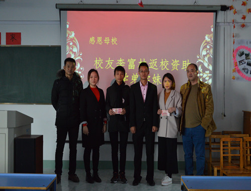 活动最后举行了隆重的受助仪式,由校友李富林亲自为受助生发放资助金,使受助生感受到感恩的真实含义,知恩于行,感恩于行。
