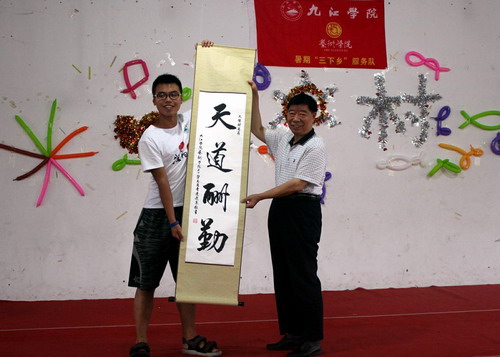 7月10日,九江学院艺术学院暑期三下乡都昌太阳村艺术团的艺术素质扩展指导合作活动圆满结束。艺术学院党委书记王春生与翟骄梓辅导员来到太阳村参与观看本次三下乡成果展示。