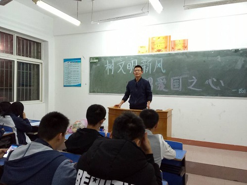 为提高同学们的文明意识,彰显同学们的爱国之心,11月15日晚,机材学院于竞知楼大一年级晚点名教室开展以“树文明新风,昭爱国之心”为主题的团日活动。机材学院大一年级部分同学参加本次活动。