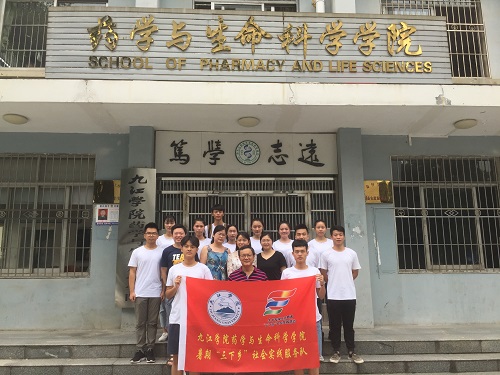 为积极响应九江学院开展2018年大学生暑期“三下乡”社会实践的号召,药生学院在一系列策划和筹备后,于7月3日上午,在心远楼楼下举行暑期“三下乡”社会实践活动启动仪式暨出征仪式,药生学院党委书记鲍海鸥、团委书记徐常龙、学生科副科长过七根以及学生科老师周海霞、石红璆、欧阳建萍出席了本次启动仪式。本期社会实践活动由药生学院学生科科长过七根老师带队,饶旭光、周祖文、江云兵等12名同学组队,前往德安县开展社会实践活动。